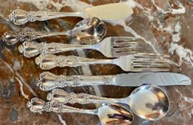 D-1 Wm Rogers Silver Flatware Service for 10 Rose Pattern; With Servers $495.00